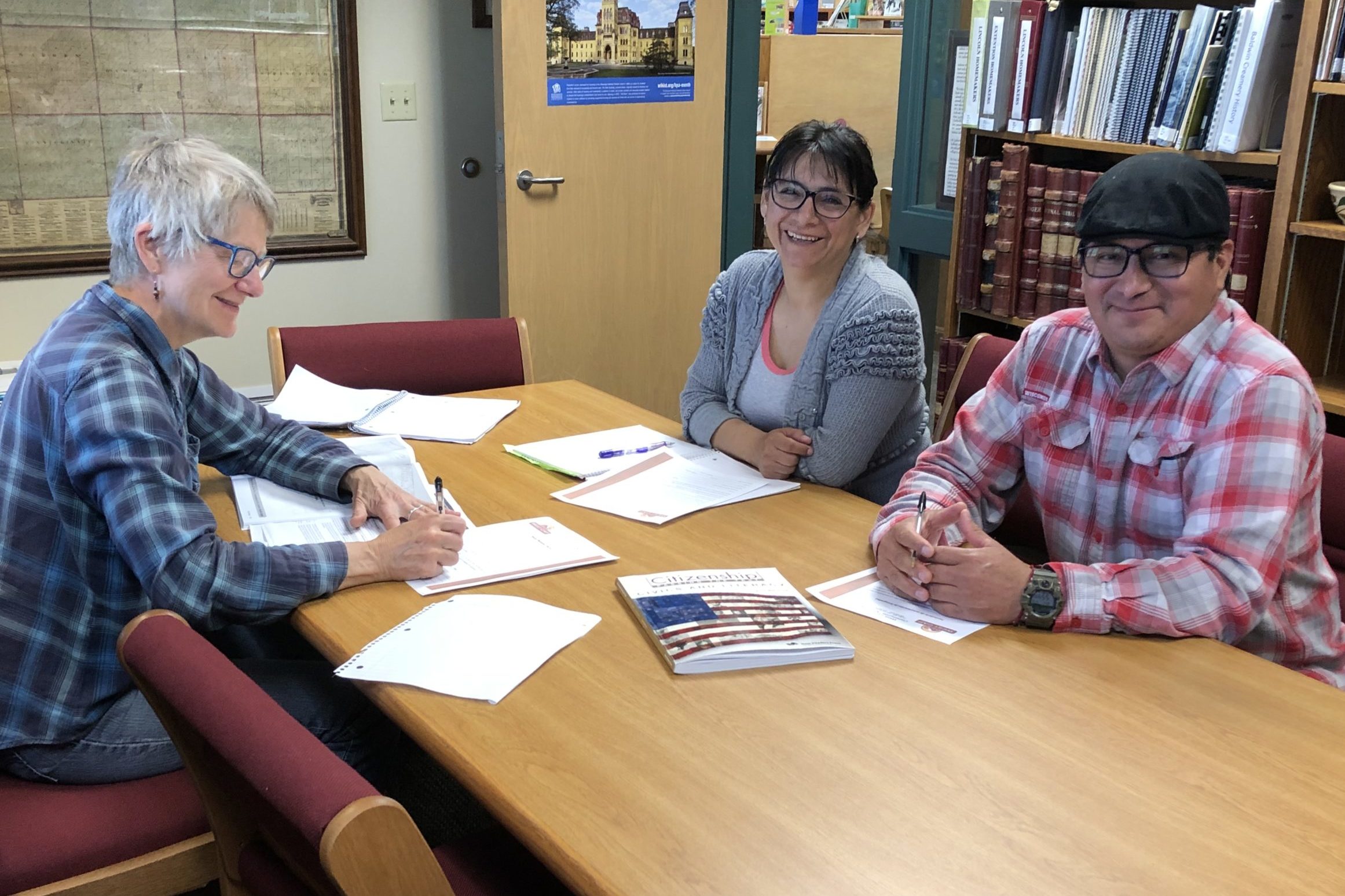 Our volunteer tutor and a retired Spanish teacher, Joyce (L), met with Karla and Cesar at the Baldwin Public Library over the course of a year to help them prepare for the U.S. Citizenship Test – They passed!